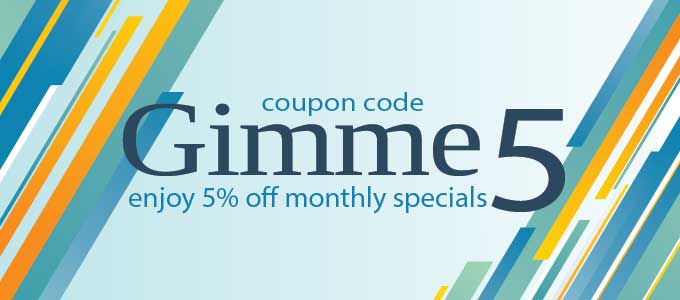 Discover our GIMME 5 SPECIALS, featuring our monthly deals! Items in this category enjoy an extra 5% discount. Be sure to check out our specials regularly—you might just find something fantastic!